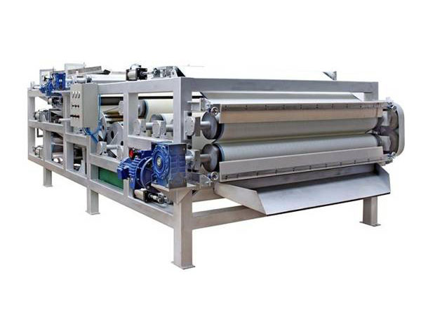 带式压滤机是利用一种特殊的过滤介质对物体施加一定的压力使液体渗透出来的机械设备。它是一种常见的固液分离设备